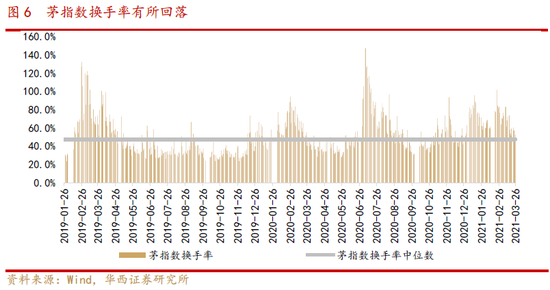 春节后核心资产估值有一定调整,但调整后的核心资产筹码仍较集中。截至3月30日,茅指数成交额占比全部A股成交额为13.6%,仍高于2019年以来中位数6.4%;占比沪深300成交额39%,高于2019年以来中位数21.7%;换手率指标有所回落,茅指数换手率降至50%,目前在2019年以来中位数(47.6%)附近。