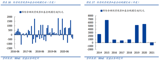 年金一季度增量预计150亿元。截至2020年底,全国企业年金实际运作金额已达2.2万亿,同比增速25%。若保持25%增速,2021年底有望达到2.77万亿。近几年企业年金股票投资占比在7%左右,假设2021年维持不变。全年增量预计400亿元。截至2020年二季度,全国职业年金资金规模约8000亿元,据测算每年约增加1800亿左右,股票投资比例约7~10%,全年增量200亿。