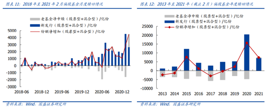 其中,2月老基金净申购1810亿元,今年前2月老基金累计净申购229亿元,尚未出现大幅赎回潮。以净增加份额减去新发行份额来估算老基金的净申赎规模,2月偏股基金(股票型+混合型)净增加4477亿份,新发行2667亿份,可得2月老基金净申购1810亿份,全年前2月累计净申购229亿元。