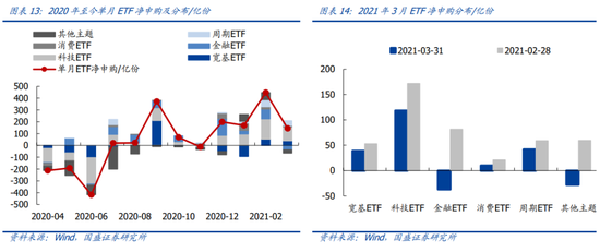3月ETF净申购144亿份,其中科技ETF净申购最多,宽基ETF净赎回最多。3月ETF净申购144亿份,比上月减少了303亿份,其中金融(-37)、科技(118)、消费(10)、周期(42)、宽基(39)、其他(-28)。今年前3月ETF净申购760亿份,金融(75)、科技(388)、消费(92)、周期(117)、宽基(-2)、其他(90),科技和周期净申购最多,宽基净赎回。