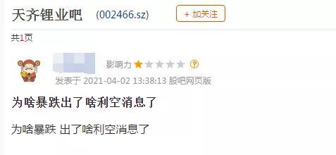 然而,回过头来看,无论是昨日还是今日,天齐锂业均未出现明显的利空消息。同时,A股同类的个股如亿纬锂能、赣峰锂业今日也表现正常,前者收涨0.63%,后者收涨0.03%;此外,雅化集团涨0.52%,只有川能动力跌得大些,跌2.13%。因此,股吧里网友们也是一脸懵,甚至还有人认为天齐锂业有可能是“乌龙指”: