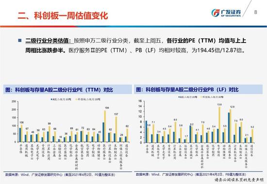 一周估值变化:(1)科创50 PE(TTM)从上上周五69.46倍上升至上周五78.09倍;(2)科创板PE(TTM)计算机最高为92.49倍,公用事业最低为28.81倍。