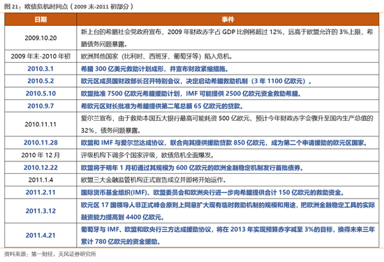 与此同时,欧债危机的爆发一定程度上也干扰了海外信用与货币政策的正常走向。09年末希腊财政赤字引爆欧债危机,此后包括比利时、西班牙、葡萄牙也相继陷入债务危机,直到10年5月欧盟成员国正式达成7500亿欧元的稳定机制。10年末,爱尔兰债务危机爆发,并成为第二个申请援助的欧元区国家;12月,评级机构下调多个国家评级,欧债危机全面爆发。为应对主权债务危机,欧元区加码救助规模,11年3月欧元区17国领导人非正式峰会原则上同意扩大现有临时救助机制的规模和用途,把欧洲金融稳定工具的实际融资能力提高到4400亿欧元。其他经济体也参与为欧债问题提供流动性援助。10年12月,英国与欧洲央行签订一项临时流动性互换安排;同月美国延长与加拿大、英国、欧洲等多国流动性互换协议,向海外金融机构提供美元资金。