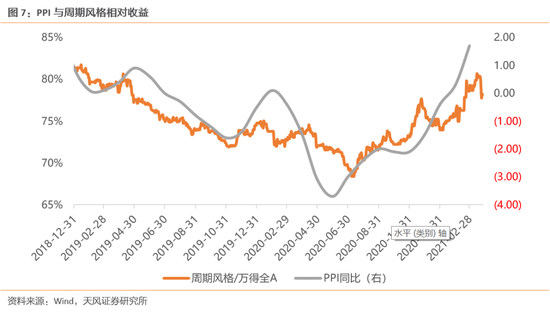 ② 2020年年中PPI见底以来,周期板块跑出了明显的超额收益,但春节过后都出现了较大幅度调整。除了市场β因素以外,PPI同比接近顶部(5月)的预期也有压制。