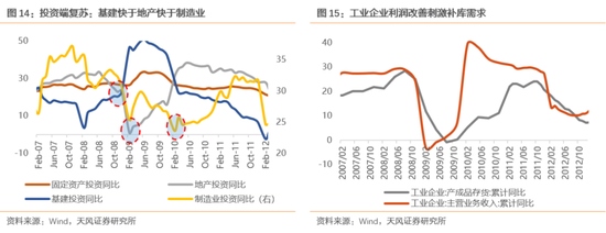 应对金融危机的刺激政策推出后,基建投资首先飙升(事实上08年以来基建投资始终处于上行区间,几乎没有受危机影响);09年2月地产投资增速见底,随后持续上行至10年5月,是PPI第一次探顶的主要推动力。