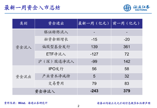 海通策略:上周资金净流出243亿元 偏股型基金新发行增加139亿元