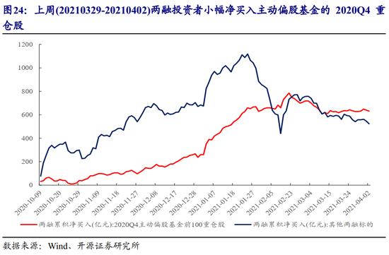 3.2 两融小幅净买入主动偏股基金2020Q4重仓股,累积净买入仍与1月相当