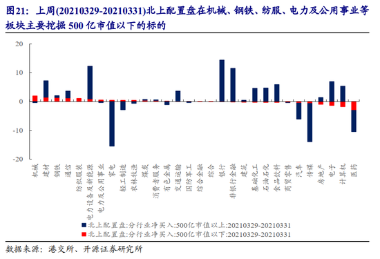 2.3 北上配置盘在机械、钢铁、纺服、电力及公用事业等板块主要挖掘500亿市值以下的标的