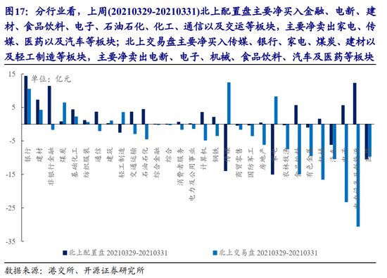 2.1 北上配置盘净买入,交易盘净卖出,两者共识在银行、建材、煤炭、化工以及纺服等板块