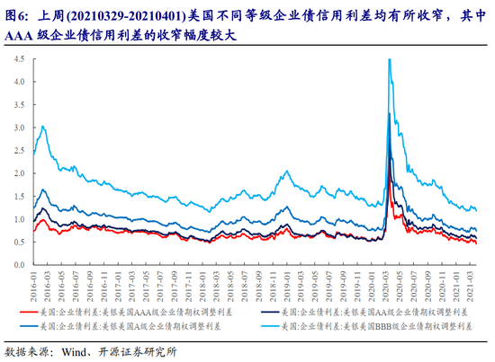1.2 美债信用利差均有所收窄,Ted利差略有走阔,但维持在低位
