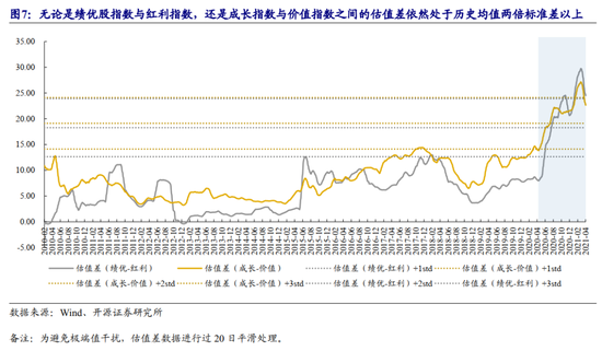 部分投资者仍在等待“经济下行”后的估值再次扩张行情,但需要注重相对风险收益比的变化。对核心资产而言,存在两大问题:(1)估值还需要继续消化,绝大部分核心资产估值仍处于80%分位上的10年高位;绩优股指数与红利指数,成长指数与价值指数之间的估值差依然处于历史均值加三倍标准差附近;(2)市场反弹恰恰又拉响了负债端的警报,由于“处置效应”的存在,居民的赎回不在下跌中,而在此前反弹里,当前已进入与“核心资产”高度相关的基金赎回压力最大的区间。同时我们需要看到的是,进入年报、季报密集披露期,周期股的业绩高增非但不是“低PE”卖的催化,可能是市场延后对于景气定价的催化剂。