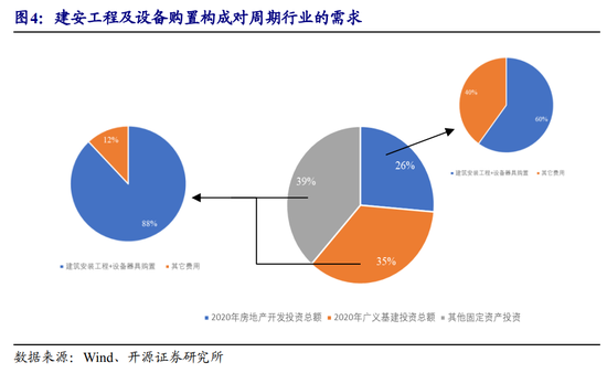 押注经济转型与格局改善的资产成为过去全市场投资者的主流组合,投资者更倾向于作“经济下行”的判断,另一方面,市场也更倾向于在社融拐点后对经济的持续改善与景气扩散不进行定价。对上述两个层面,我们都看到了乐观的理由:一方面,市场对基建、地产投资下滑预期充分,但从量化测算来看,即使在对这两者维持谨慎假设下,以制造业为主导的其他固定资产投资也会拉动对周期行业的需求增速(建安工程+设备购置)达到6%以上,超过了2017年。另一方面,出口已经从2020年11月份以来成为经济重要的动能,目前这一动能不仅未出现走弱迹象,反而可能有新的支撑,我们发现美国制造业PMI领先于我国出口金额9个月,意味着美国经济接下来的“Reopen”过程也会对我国出口形成拉动。