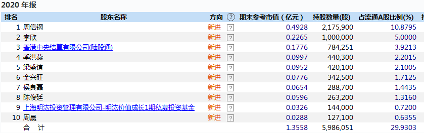 而截至2020年末,周晨、李欣仍分别持有亿通科技855.10万股、612.93万股股份,位列第二、第三大流通股股东。