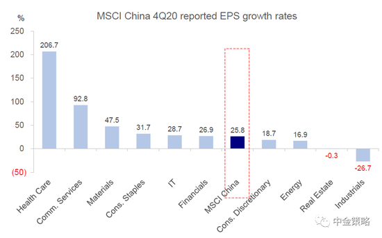 正如我们在此前发布的报告《2020业绩预览:增长有望继续修复》中所指,我们预计2020年全年海外中资股业绩同比呈现个位数下降,但去年下半年和4季度业绩有望出现显著好转。我们预计业绩回暖势头在2021年将延续下去,预计今年海外中资股盈利增速达到16.9%。