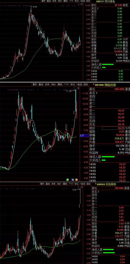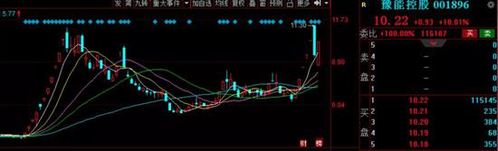 又如河南投资集团旗下的豫能控股,曾在去年年末走出“11天10板”惊人行情。