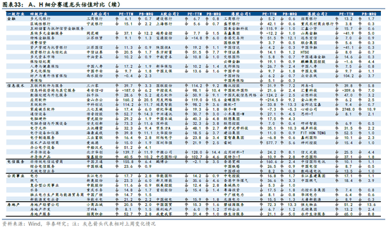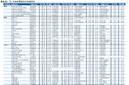 A/H分行业估值