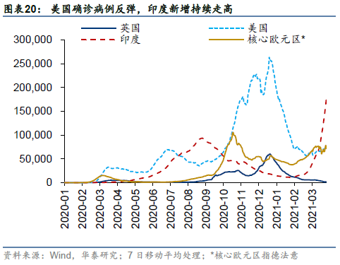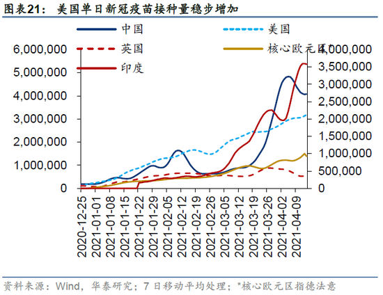 (1)全球疫苗接种率及有效性持续低于预期:疫苗对于变异病毒的有效性仍在验证中,同时疫苗接种率进展也仍存不确定性,可能对全球经济修复和再通胀的预期形成压制。