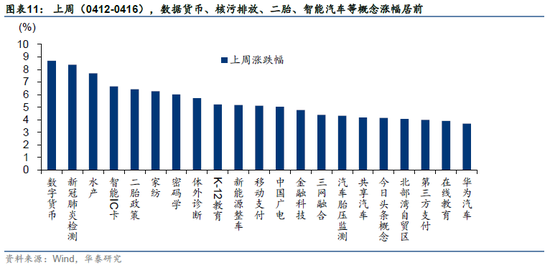 上周,A股继续缩量震荡,日均成交额为年内新低。海外流动性压力边际缓释(美债长端利率环比下行、美元指数继续回落),陆续披露的21Q1业绩总体看也并不差,但主要指数继续调整、部分龙头接连下挫,或反映市场前期预期较满、较乐观,茅指数PE-TTM(2021.4.16)仍处2010年以来94%分位数水平,当前仍处于预期修正过程。我们在4.9发布的报告《Q2:仍在右侧,以小胜大》中指出“Q2指数大概率维持横盘震荡,建议以小胜大”,上周中证500跑赢沪深300。市场主线看,上周交易未有明确的主线、相对较散,以事件催化型主题为主,如核污排放、二胎、数字货币、智能汽车等。