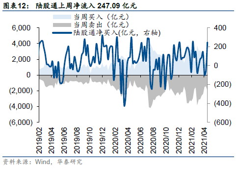 上周追踪新兴市场权益的前50大ETF净流入7.66亿美元,环比增加3.38亿美元;南下资金净流入45亿港币,规模环比有所下降;从分行业南下资金流向来看,半导体与半导体生产设备(+9.73亿元)、软件与服务 (+6.20亿元)、食品饮料及烟草(+4.87亿元)板块净流入居前,电信(-7.44亿元)、材料(-6.17亿元)、零售业(-5.06亿元)板块净流出居前。