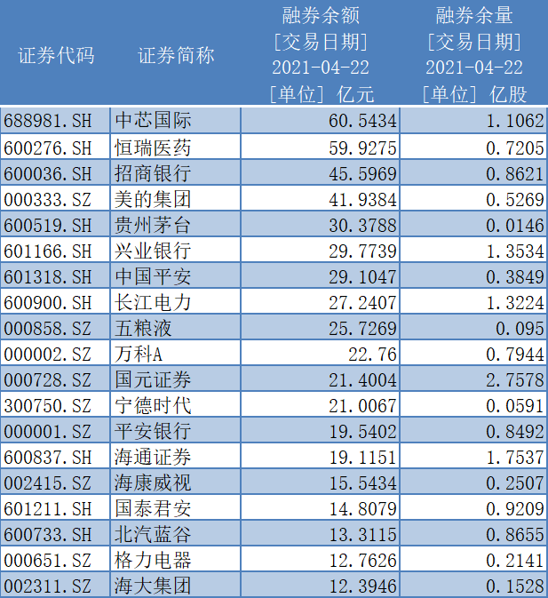 WIND数据显示,截至4月21日,科创板融券余额175.2亿元,占两市融券余额总量的11.5%,融券余量3.35亿元。