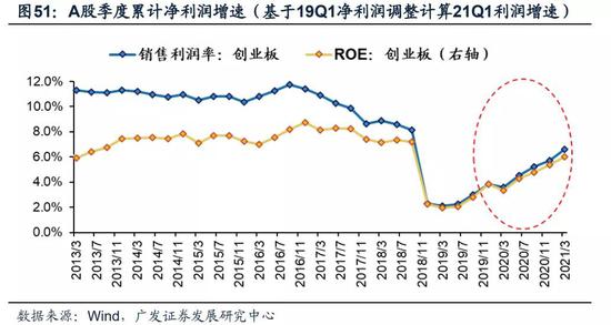 剔除去年低基数效应后,创业板的收入和利润增速仍显著改善。创业板一季报收入增速53.1%(年报收入增速4.57%);创业板一季报利润增速81.2%(年报利润增速39.6%)。中小板三季报利润增速14.96%(中报利润增速6.87%)。