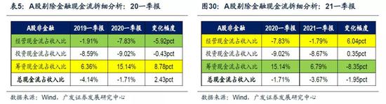 一季度流动性环境也体现出了“经济进、政策退”的思路,不过,现金流量表来看:筹资现金流恶化的幅度大于经营现金流改善的幅度。20Q1“经济退、政策进”,企业的现金流反而出现好转——去年一季度“新冠”疫情全球蔓延,企业经营现金占收入比大幅回落5.9pct,全球/国内政策大宽松,企业筹资现金占收入比大幅提升8.8pct。整体来看,去年一季度企业现金占收入比反而边际改善了2.4pct。随着国内疫情逐步得到控制、疫苗落地,“经济进、政策退”,21Q1企业的总现金流反而“边际转差”——21Q1企业经营现金占收入比明显改善6.0pct,不过,随着货币和信用政策逐步收敛,企业的筹资现金占收入比则明显恶化了8.4pct。整体来看,今年一季度企业总现金占收入比反而边际恶化了2.0pct。我们判断:一季度企业现金流边际恶化,将一定程度上掣肘“政策退出”的节奏,这意味着流动性“不急转弯”的重点仍继续落在“不急”上面。