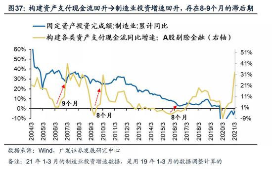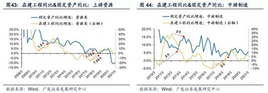 经验数据显示:产能扩张早周期的制造业固定资产同比增速一般会有所滞后:构建各类资产支付的现金流同比增速 > 制造业固定资产投资增速 > 在建工程同比增速——