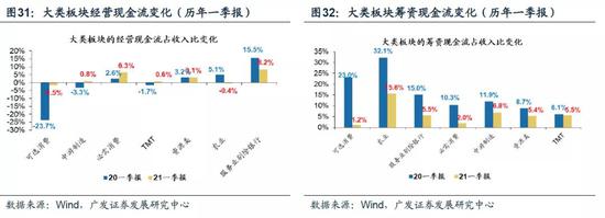 被偏爱的“科技制造”有恃无恐,得不到的“可选消费”则在躁动。结构上来看,一季报中游制造/TMT的经营现金流修复幅度靠前,但依然受到政策偏爱,筹资现金流收敛的幅度仍较靠后;另一方面,可选消费一季度的经营现金流修复幅度最大,但筹资现金流收敛的幅度也排名靠前。由此可见:科技制造行业仍一定程度受到政策倾斜,即便“造血能力”已经修复,政策仍较大力度“供血”。