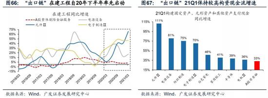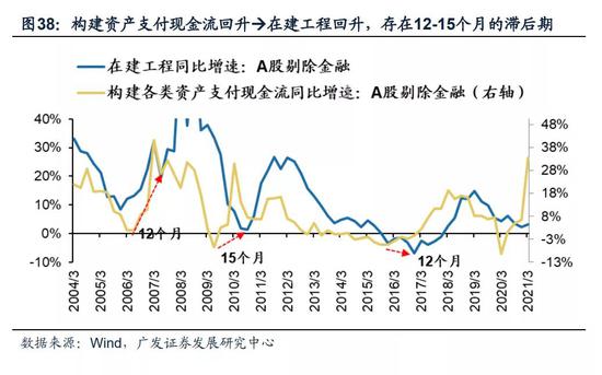 本轮产能扩张周期中,A股剔除金融的构建资产支付现金流同比增速从20年3月开始回升,我们判断:制造业固定资产投资增速和在建工程同比增速也将从21年开始触底回升。