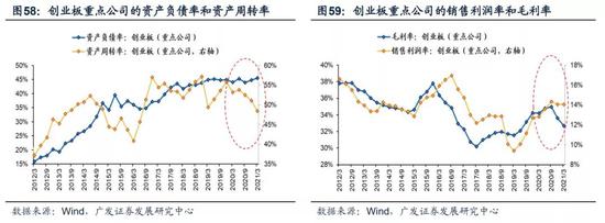 创业板重点跟踪公司的盈利能力连续两个季度回落。基于分析师重点跟踪公司(5家及以上机构出具盈利预期)为样本,构建重点跟踪公司的盈利和估值分析体系(详见《重构全动态估值:寻找性价比》,20200828)。创业板重点跟踪公司21Q1的ROE(TTM)回落到12.9%,已经连续两个季度下行。作为对照,创业板整体和A股剔除金融整体的ROE(TTM)则在持续回升周期中。