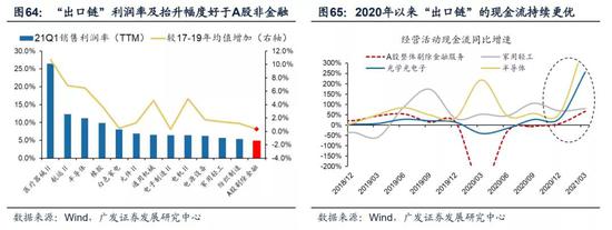外需确定性+充沛现金流+回升利润率,共同驱动“出口链”制造业的产能扩张周期领先A股整体率先开启,我们去年三季报分析《结构性扩产,出口链先行》的判断得到验证。我们在2020.11.4《“结构性”扩产,“出口链”先行》中提到,三表修复及产能出清共同驱动新一轮产能扩张,其中外需主导的“出口链”率先扩产的确定性最高。从20Q4-21Q1的趋势来看,“出口链”在订单饱和的驱动下“扩产”信号进一步增强,且趋势好于A股整体,代表行业如:元件、电源设备、电子制造、纺织制造、白色家电、家用轻工等。