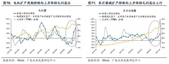 2. 出口商品的国际竞争优势决定了疫后出口份额的新均衡。从“出口链”的扩产趋势下寻找毛利高位或继续提升的行业,意味着供需两旺、且行业在全球商品中保持良好的竞争优势,有望巩固份额。需求拉动扩产的同时保持较高的毛利率是竞争优势的体现,代表行业如元件、电子制造、电机、通用机械、医疗器械等设备制造行业。