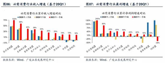 稳健依然是必需消费行业的最大优势,去年一季报必需消费行业受疫情冲击很小,因此在20Q1基础上我们观察21Q1的收入及盈利增速,可见大多数行业都保持高速正增长。