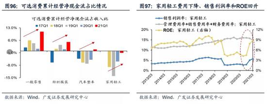 3. 销售费用和管理费用率持续下探,控费使得销售利润率继续抬升,支撑ROE上行。除一般零售业和餐饮外,21Q1可选消费各细分行业销售费用和管理费用率均有所下降;财务费用率出现分化,休闲服务与商业贸易板块的子行业财务费用均上行,总体三费率仍下降。控费使得视听器材、白色家电、汽车整车等行业在毛利率下降的情况下,销售利润率反而抬升。