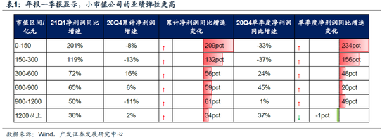 ● A股一季报交出较为满意答卷,“市值下沉”显著,详见我们今日发布的财报深度解析《“结构性”扩产,涨价顺周期接棒》。1. 即便剔除低基数效应,A股非金融一季报归母净利润增速仍显著改善;2. ROE连续4个季度回升,主要驱动力在于“供需缺口”支撑利润率回升;3. “市值下沉”继续演绎,各维度下中小市值的也借机改善弹性更大;4. A股结构性扩产迹象增强,由去年Q3出口链向21Q1的涨价顺周期扩散。5. 潜在“隐患”在于筹资现金流边际恶化幅度胜过经营现金流改善。