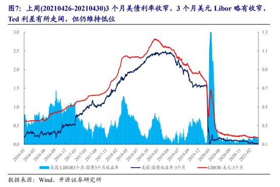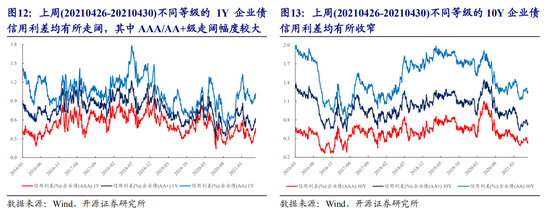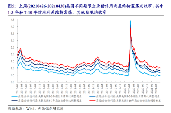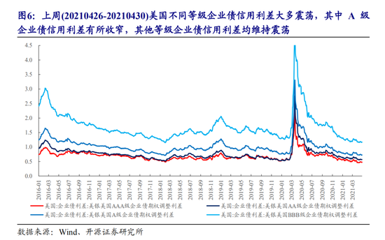 上周(20210426-20210430)美元指数下降,截至4月27日,美元多头/空头头寸规模均下降,净多头头寸有所下降,中美利差有所收窄,美债名义利率上升,实际利率维持震荡,其背后反映的通胀预期有所上升。对于海外而言,美国企业债信用利差维持震荡或收窄,Ted 利差略有走阔,但仍维持低位,美国金融系统流动性整体仍较充裕;对于国内而言,上周流动性分层现象不明显,信用利差短端走阔,长端大多收窄。交易热度上,上周纺服、钢铁、医药、煤炭、汽车、有色、综合、商贸零售、电力及公用事业、电新等行业交易热度处历史较高水平,且纺服、医药、煤炭、有色、综合、电新等板块交易热度环比仍在提升。调研上,电子、建材、医药、计算机、军工、食品饮料、石油石化等板块调研热度居前,且上述除军工及石油石化外的板块调研热度环比上升。