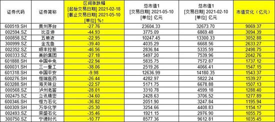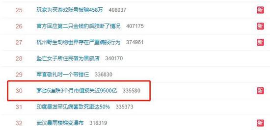 据统计,A股和港股牛年春节以来,分别有17只和16只,市值缩水超过1000亿元人民币和1000亿港元。市值巨头的腾讯、茅台,股价跌幅分别为21.4%和27.76%,但市值分别跌去1.55万亿港元,9069亿元人民币。