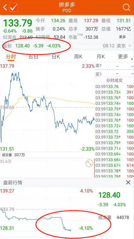 拼多多在美股上市还没开盘,目前盘前价一度跌去超4%.