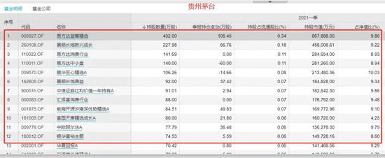 茅台作为公募基金第一大重仓股,1400多只主动偏股基金重仓。张坤的易方达蓝筹精选与易方达中小盘、刘彦春的景顺长城新兴成长、萧楠的易方达消费行业、王宗合的鹏华匠心精选等持仓较多。