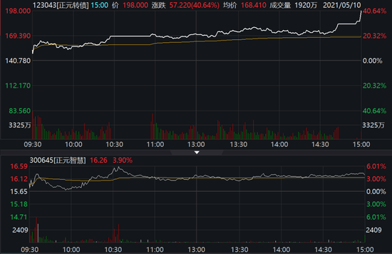 正元转债涨超40%,正股正元智慧涨幅不到4%。