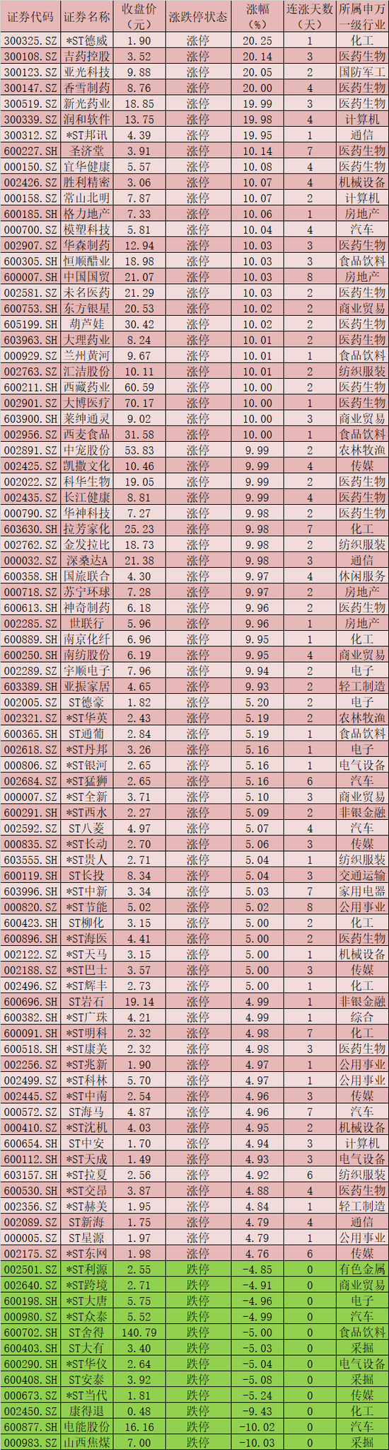板块方面,周四,申万一级28个行业中,有5个行业实现不同程度的上涨,医药生物行业领涨,涨幅达到0.95%,其他实现上涨的行业还有,房地产、商业贸易、食品饮料、国防军工。另外,23个行业处于下跌态势,其中,钢铁行业跌幅居首,达到5.82%,此外,有色金属、采掘等两行业跌幅也位居前列均超4%。