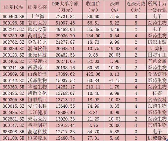 一、周四(5月13日)DDE大单资金净买入TOP20