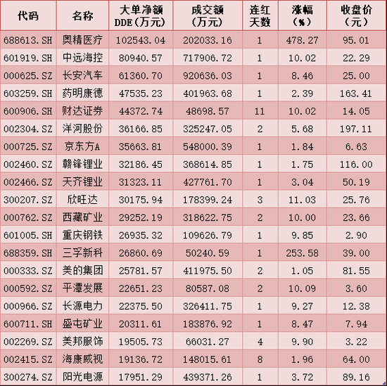一、周五(5月21日)DDE大单资金净买入TOP20