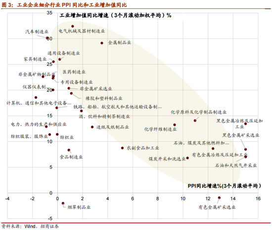 从各个行业量价修复情况来看,上游资源品已经出现非常明显的量价齐升现象,无论工业增加值还是PPI均出现较大幅度修复。