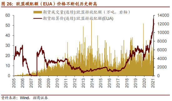 这一现象背后的深层逻辑是各国政府对全球气候变化及能源变革的高度重视与高度共识。早在去年3月,欧盟为了振兴经济便提出了“绿色振兴计划”,此后,中国于去年9月提出30/60目标,今年4月美国举行气候峰会,美日英韩等各国纷纷提高减排目标,均对EUA价格上行形成支撑。