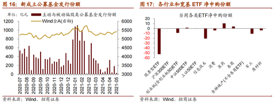 从ETF净申购来看,ETF净赎回,创业板ETF和行业ETF赎回较多。具体来看,股票型ETF总体净赎回52.7亿份。其中,沪深300、创业板、上证50ETF分别净申购0.17亿份、净赎回9亿份、净申购0.34亿份。行业方面,信息技术ETF净赎回20.7亿份;医药ETF净申购10.4亿份;券商ETF净申购4亿份;金融地产类ETF净赎回0.3亿份;军工ETF净赎回10.8亿份;新能源类ETF净赎回10.5亿份。