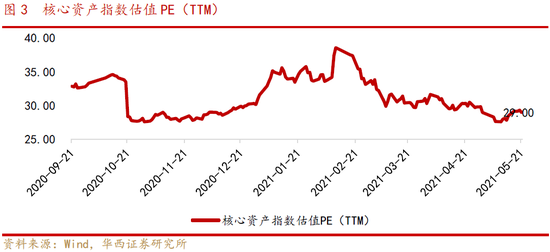 从过去市盈率看,今年2月份核心资产指数估值达到阶段性高位,市盈率高点达38.57;随后核心资产指数估值持续下降,截至5月10日,市盈率为27.60,估值回落至2020年以来低位;而过去两周以来白马股的反弹使得核心资产指数市盈率回升至29.00倍附近。