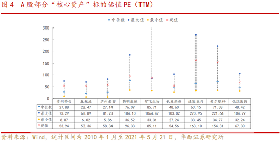“好”的资产需对应“好”的资产价格,预计A股“核心资产”个股之间股价会进一步分化。个股层面来看,A股部分核心资产估值仍偏高。截至5月21日,部分白酒板块、新能源汽车板块龙头个股估值仍高于2010年以来中位数水平,而部分个股估值已回落至2010年以来中位数以下(智飞生物、立讯精密、韦尔股份)。