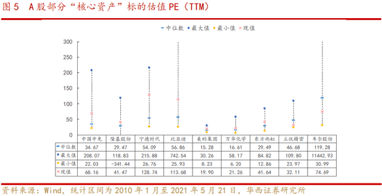 四、“好”的资产需对应“好”的资产价格,预计A股“核心资产”个股之间股价会进一步分化。5月10日,核心资产指数估值回落至2020年以来低位,过去两周以来白马股短期反弹,核心资产指数估值小幅回升。个股层面来看,A股部分核心资产估值仍偏高。截至5月21日,部分白酒板块、新能源汽车板块龙头个股估值仍高于2010年以来中位数水平,而部分个股估值已回落至2010年以来中位数以下。