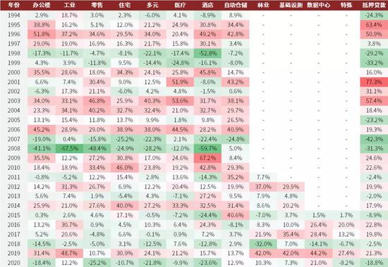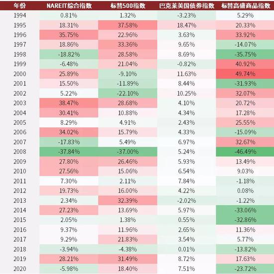 图表: 1994-2020年美国REITs市场细分产品收益率表现